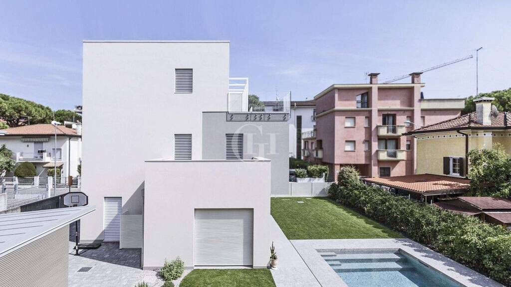 In Lido di Jesolo, in einer begehrten Gegend und nur wenige Gehminuten vom Meer entfernt, befindet sich diese moderne Einzelvilla, eine exklusive Immobilie, die sich durch klare architektonische Linien und eine hochwertige Bauqualität auszeichnet. Das Anwesen zeichnet sich durch seine völlige Unabhängigkeit, gepflegte Außenbereiche und einen privaten beheizten Pool aus, der sich perfekt in den Garten einfügt und eine private Oase schafft, die ideal für Momente der Entspannung oder Geselligkeit ist.