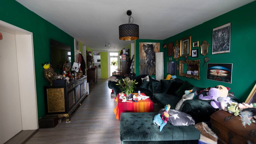 Vom Eingang gelangt man bequem direkt in das großzügige Wohnzimmer. Dieses teilt sich in den Empfangsbereich, einen Essbereich und einen Wohnbereich.