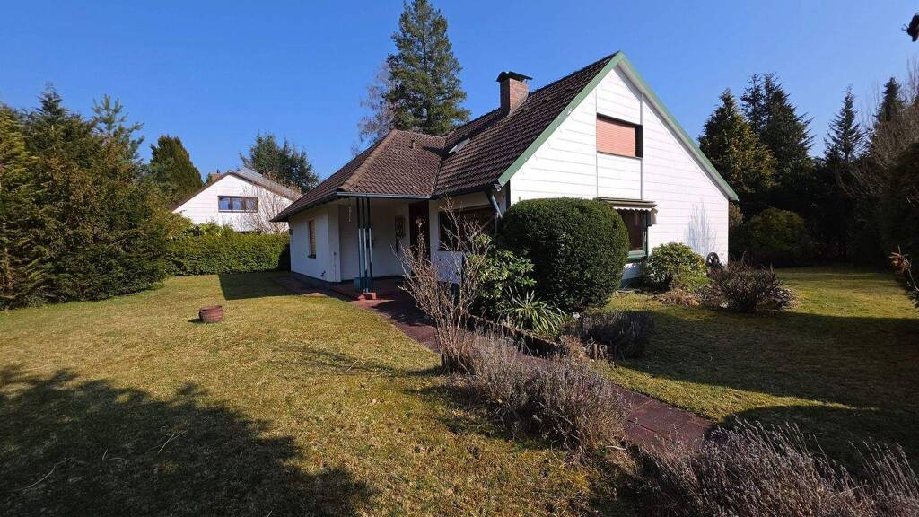 Attraktives 8-Zimmer-Einfamilienhaus auf großzügigem Grundstück in 90592 Schwarzenbruck Zum Verkauf steht ein freistehendes Einfamilienhaus mit 8 Zimmern aus dem Baujahr 1965 in 90592 Schwarzenbruck auf einem großzügigen Grundstück mit 831 m² Fläche. Die Immobilie bietet eine Wohnfläche von ca. 177 m² sowie vielseitige Nutzungsmöglichkeiten für unterschiedliche Wohnkonzepte. Das Grundstück weist eine Neigung von ca. 25° zur Südseite auf und überzeugt durch einen gepflegten, grünen Außenbereich mit schönem Baum- und Buschbestand, der dem Grundstück eine angenehme Privatsphäre sowie ein naturnahes Wohngefühl verleiht. Das Haus verfügt über eine Raumhöhe von ca. 2,21 m.