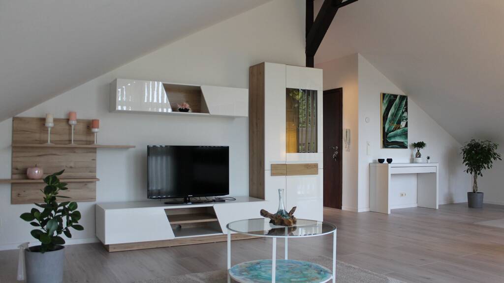 The living room is very harmoniously furnished and also invites you to stay. In the kitchen there are already plates, glasses, cups etc. so you only have to bring your own suitcase.