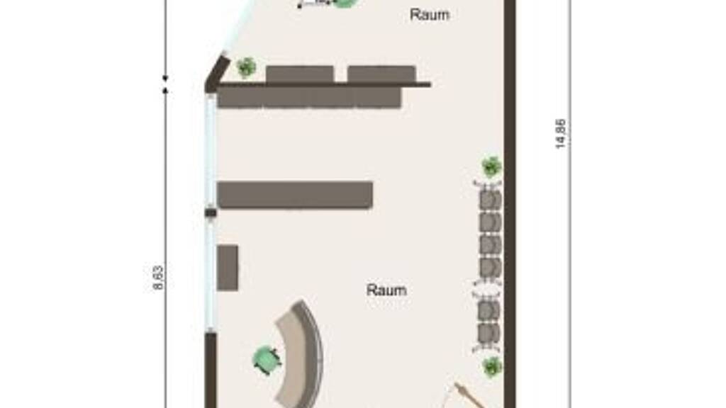Gewerberaum (ca. 6,15 m x 14,18 m) - (ca. 3,39 m x 5,96 m) / 2 ca.77,10 m²