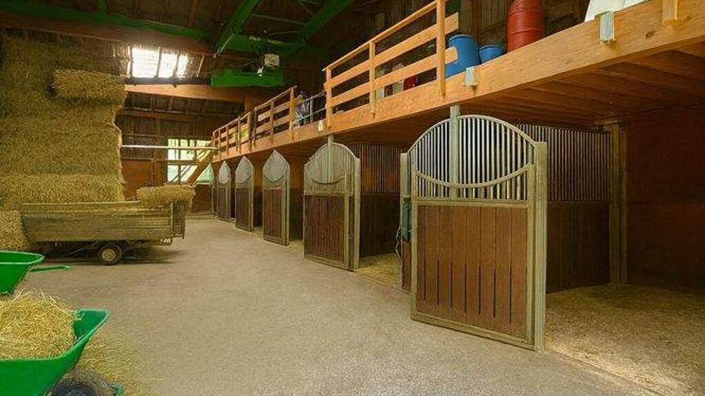 Die bestehende Anlage umfasst eine Reithalle mit großzügigen Pferdeboxen, eine Scheune mit Heulager, Lagerräume, Traktorunterstand sowie eine funktionale Pflegerwohnung direkt vor Ort - ideal für den täglichen Betrieb.