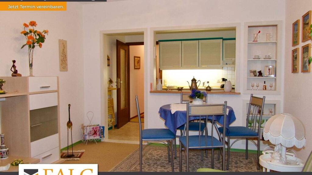Einfach Mehr: Gepflegte Nichtraucher-2-Zimmer-Wohnung, möbiliert, TG, Aufzug, Süd-Loggia-Balkon.