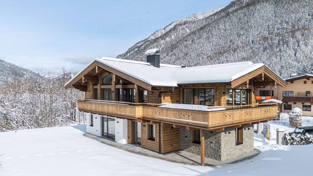 Diese hochwertige Immobilie überzeugt durch eine gelungene Kombination aus traditioneller Handwerkskunst und modernem Komfort. Die großzügigen Terrassen sind mit edlem Feinsteinzeug belegt, während im Innenbereich ein eleganter Sichtdachstuhl mit aufgesetzten Altholzscheinsparren für alpines Wohnflair sorgt. Der Außenbereich ist mit Betonpflastersteinen stilvoll gestaltet. Die Fenster aus Weißtanne und die Haustüre aus Altholz unterstreichen den hochwertigen, natürlichen Charakter des Hauses. Im Innenbereich setzen Türen und Fußböden aus Eiche warme, zeitlose Akzente. Ein offener Kamin mit dreiseitigem Sichtfenster sorgt für behagliche Atmosphäre im Wohnbereich. Für Entspannung pur steht die Sauna in Altholzausführung zur Verfügung. Die umweltfreundliche Fernwärmeheizung garantiert effiziente Wärmeversorgung. Dank vorbereitender Maßnahmen ist die Errichtung eines Pools problemlos möglich (gegen Aufpreis).