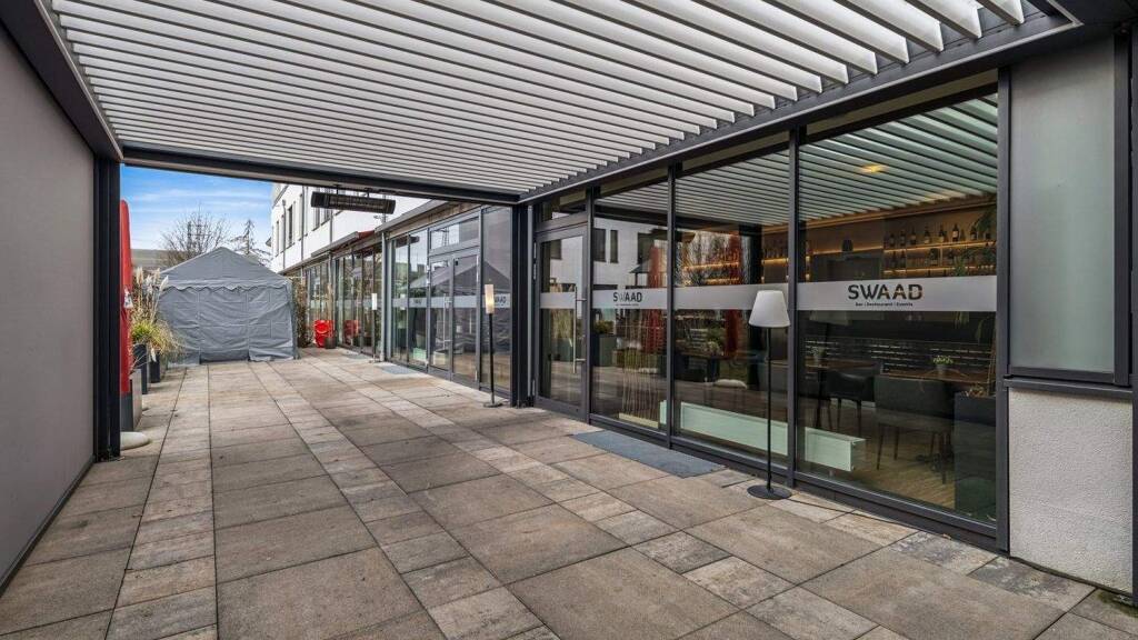 Ergänzt wird das Raumangebot durch eine großzügige Außenterrasse, die insbesondere in den Sommermonaten ein gefragtes Highlight darstellt und die Aufenthaltsqualität für Gäste deutlich erhöht. Dem Restaurantbetrieb steht zudem die Nutzung der vorhandenen, freien Stellplätze in der Tiefgarage zu. Die Parktickets können für die Restaurantkunden gemäß bestehender Vereinbarung rabattiert werden.