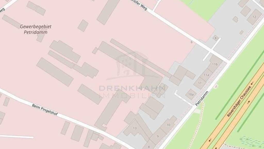 Stadt Rostock-Dierkow - das Objekt gelegen im Gewerbegebiet Rostock Dierkower Damm östlich der Unterwarnow, nördlich der B105 / L22 (Rövershäger Chaussee) und westlich der BAB A19. Zufahrt über den Petridamm.