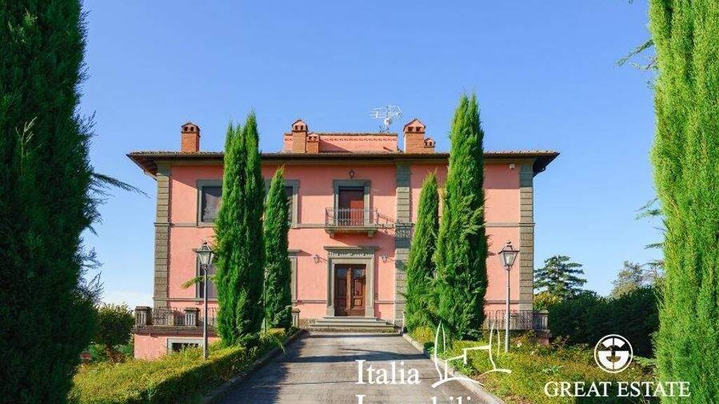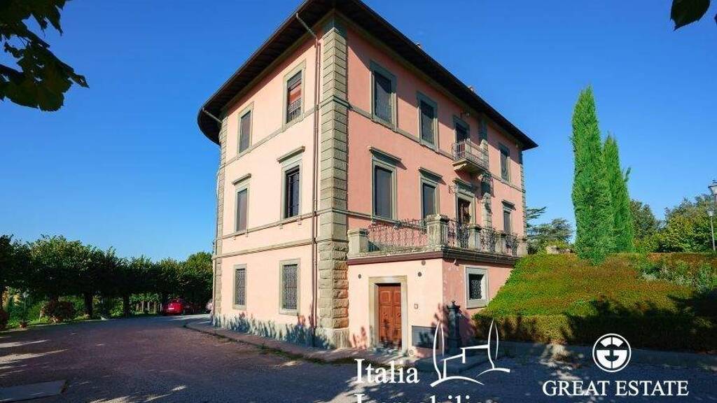 Diese reizvolle Villa im Jugendstil befindet sich in einer hervorragenden Lage in der Gemeinde von Cortona. Sie erstreckt sich über drei Ebenen mit einer Gesamtfläche von 690 m² und ist in drei unabhängige Einheiten unterteilt. Der Haupteingang befindet sich im ersten Stock, zu dem man über eine große Außentreppe aus Pietra Serena gelangt. Auf dieser Etage befinden sich der Vorraum mit Zugang zum Atrium, das Wohnzimmer mit Terrasse und die Eckküche, die durch große Fenster erhellt wird, drei Schlafzimmer, von denen eines über ein eigenes Bad verfügt, ein weiteres Bad und ein Abstellraum. Die zweite Etage ist über eine Innentreppe oder einen Aufzug erreichbar. Hier befinden sich ein großes Wohnzimmer, zwei Schlafzimmer, zwei Bäder und ein Esszimmer. Im Erdgeschoss der Villa gibt es schließlich die dritte Einheit, die aus einem Eingangsbereich, drei Schlafzimmern, einem großen Wohnzimmer, zwei Bädern und einem weiteren Esszimmer besteht. Technik-/Waschraum im Erdgeschoss mit ca. 50 m². Im Dachgeschoss befindet sich ein Abstellraum mit Zugang zum Dach mit einer Terrasse von ca. 20 qm. Der Park der Villa, mit vielen hohen Bäumen, ist 2.200 qm groß und hat zwei Eingänge. Eine praktische Garage von ca. 50 qm vervollständigt die Immobilie.