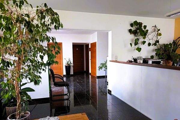 ERDGESCHOSS: sehr großer Vorraum, Wohnzimmer (Empfangsraum), Büro, möblierte Küche, barrierefreies WC;