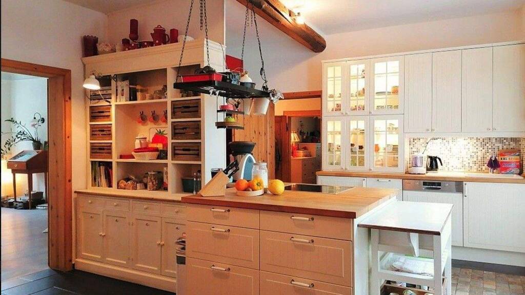 - eine Einbauküche mit allem Zubehör + einem Esstisch mit Stühlen für 6 Pers.