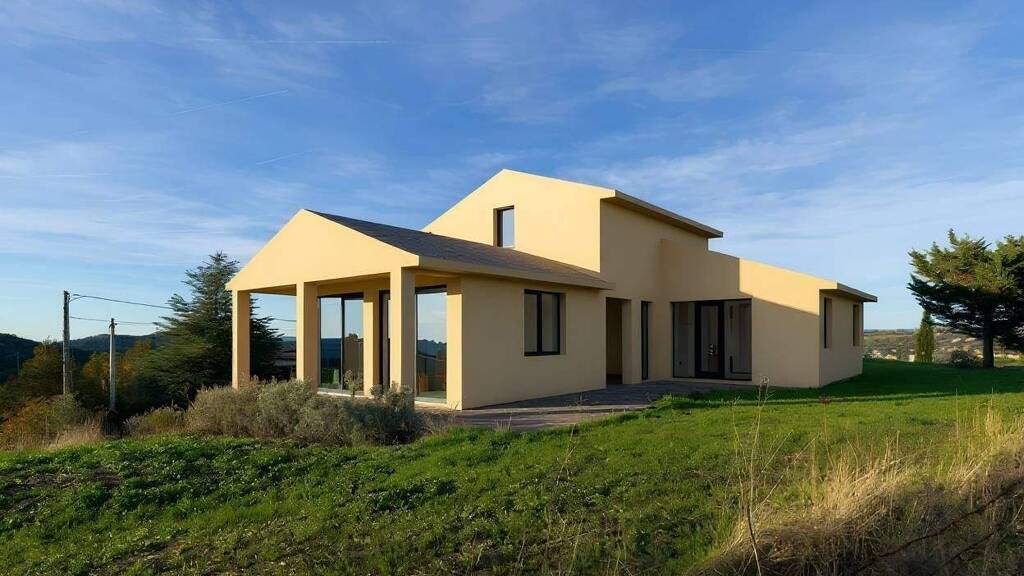 Auf einem einzigen Grundstück von 1.375 m² befindet sich ein nach vier Seiten freies Anwesen, das auf drei Ebenen bebaut und im aktuellen Zustand (unfertig) verkauft wird. Es ist in einen authentischen ländlichen Kontext eingebettet und mit der landwirtschaftlichen Nutzung des Grundstücks verbunden.