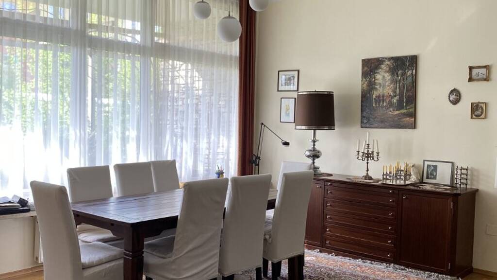 Die Wohnung liegt im Sockelgeschoss, bietet jedoch einen direkten, ebenerdigen Zugang über den Garten und vereint damit die Vorteile eines Hauses mit dem Komfort einer Wohnung.