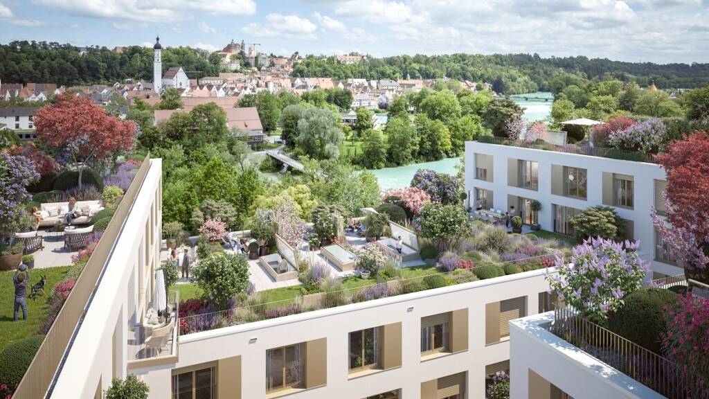 Ein echtes Highlight: Dieses 2-Zimmer-Penthouse entsteht als Teil des preisgekrönten Vorzeigequartiers "Urbanes Leben am Papierbach" im neuen "Lechwinkel" direkt am grünen Lechufer. In der dritten und damit obersten Etage bietet dieses Penthouse ein Wohngefühl der Extraklasse. Die Wohnung betritt man über ein geräumiges Entrée mit guten Stellmöglichkeiten für Garderobe & Co. Herzstück der Wohnung ist der offene, loftartige Wohn- und Essbereich mit offener Küche und großen, bodentiefen Fensterfronten zu beiden Seiten. Vom Wohnbereich aus führt eine innenliegende Treppe direkt auf die eigene, rund 20 Quadratmeter große Rooftop-Terrasse samt eigenem Dachgarten. Von hier aus genießen Sie einen einmaligen, unwiederbringlichen Lech- und Altstadtblick, die intensive Dachbegrünung mit unterschiedlichen, sorgsam kuratierten Vegetationsflächen sorgt zudem für viel Privatsphäre und ein Wohnen wirklich im Grünen. Das Penthouse selbst bietet zudem ein Schlafzimmer, ein geräumiges Duschbad sowie einen praktischen Abstellraum inkl. Waschmaschinenanschluss. In der hauseigenen Tiefgarage stehen (elektrifizierbare) Einzelstellplätze zur Verfügung. Ein eigenes Kellerabteil (mit Strom) rundet das Raumangebot ab. Worauf warten Sie noch - sichern Sie sich Ihren Teil von "Landsbergs neuer Seite"!