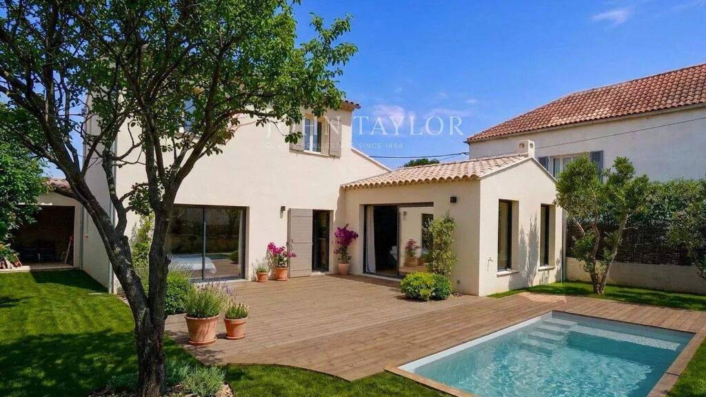 À quelques pas du centre de Saint-Rémy-de-Provence et des Alpilles, cette élégante maison neuve bénéficie d'un emplacement privilégié dans l'un des quartiers les plus recherchés du village. Développant environ 130 m² habitables sur un terrain d'environ 500 m², la propriété offre de beaux volumes baignés de lumière. Le rez-de-chaussée s'organise autour d'une vaste pièce de vie avec salon, salle à manger et cuisine ouverte avec îlot central, largement ouverte sur les terrasses et le jardin. Une suite parentale avec salle d'eau complète ce niveau. À l'étage, deux chambres disposent chacune de leur propre salle de bain. Un garage d'environ 35 m², offrant un potentiel d'aménagement, vient parfaire l'ensemble. À l'extérieur, le jardin paysagé aux essences méditerranéennes s'articule autour d'une piscine et de terrasses conviviales, invitant à profiter pleinement de l'art de vivre provençal. Une propriété clés en main, idéale en résidence principale ou secondaire au cour de la Provence.