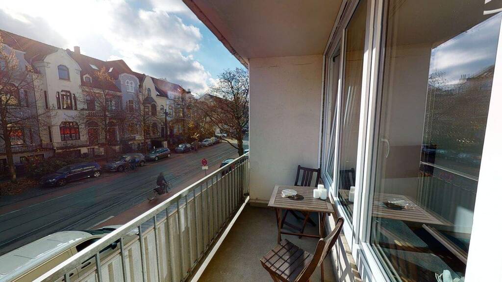 *English* The apartment is located in Bremen's most popular street, Wachmannstraße. There is a REWE supermarket and a bakery directly downstairs. The Bürgerpark can be reached on foot in 5 minutes. There is a tram (lines 6 and 8) in front of the door, so you can reach the main station in 5 minutes and the city centre in 10 minutes. Parking is free behind the house in the streets and there are plenty of parking spaces.