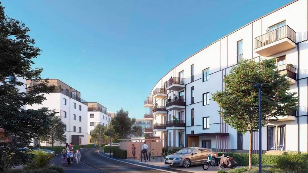The apartment is located in Berlin-Mariendorf (Tempelhof-Schöneberg) in the new Hugos district and impresses with its quiet, green location and excellent transport connections.