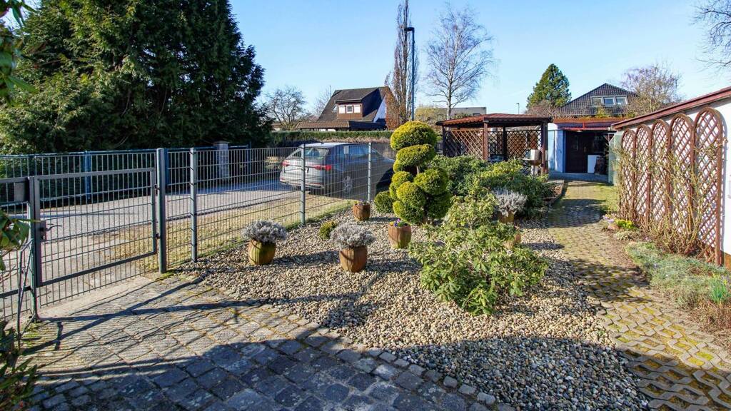 Ein besonderes Highlight ist das großzügige Grundstück mit etwa 850 Quadratmetern Fläche. Hier finden Gartenliebhaber, Selbstversorger oder Menschen mit kreativen Ideen viel Raum zur Entfaltung. Der Außenbereich verfügt über einen Koiteich sowie ein Gewächshaus und bietet damit ideale Voraussetzungen für alle, die gerne Zeit im eigenen Garten verbringen. Darüber hinaus befinden sich auf dem Grundstück zwei Nebengebäude. Eines davon wurde als Aufenthaltsraum ausgebaut und eignet sich hervorragend als Hobbyraum, Werkstatt oder geselliger Treffpunkt.