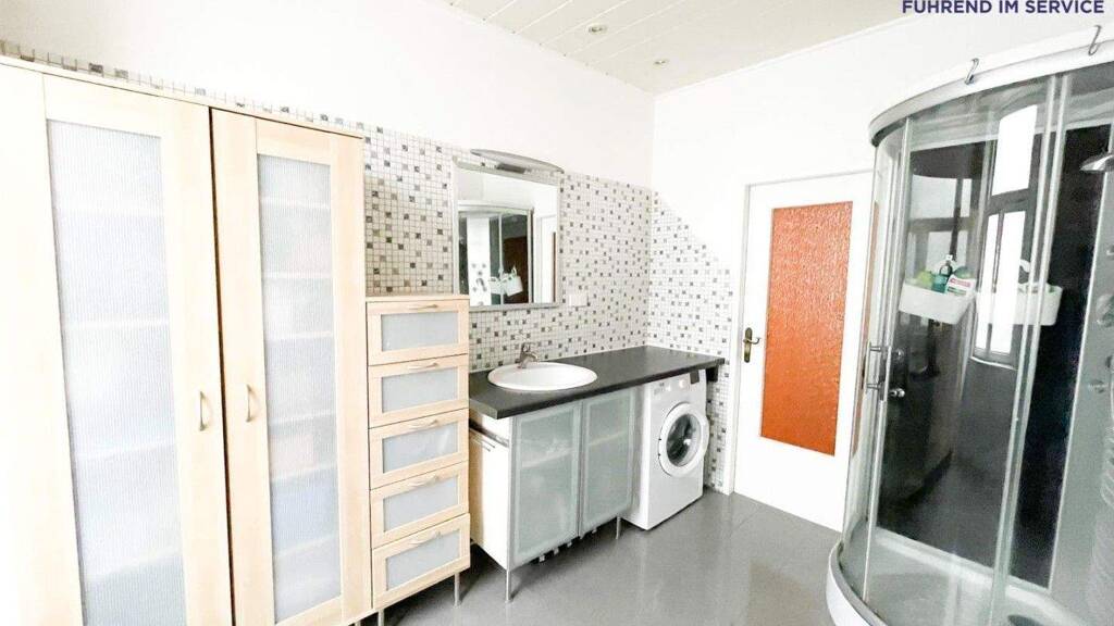 Badezimmer: Großzügig gestaltet mit Dusche und Fenster für optimale Belüftung.