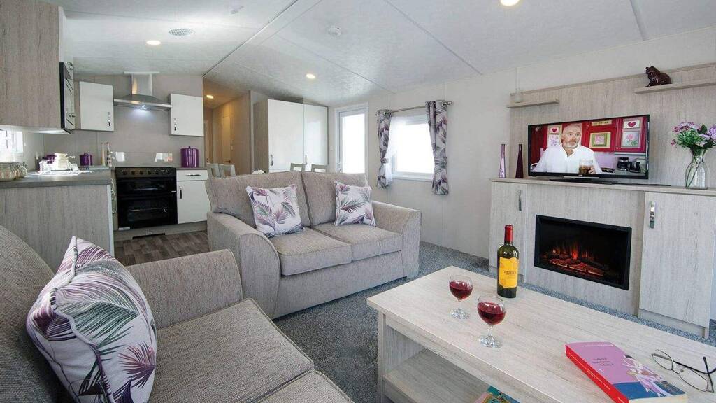 Das Delta Saffron ein englisches Modell mit einem geräumigen Wohnzimmer und drei Schlafzimmern, ideal für den Urlaub in. Das Angebot umfasst Mehrwertsteuer, Transport, Installation, Möbel und Anschluss.