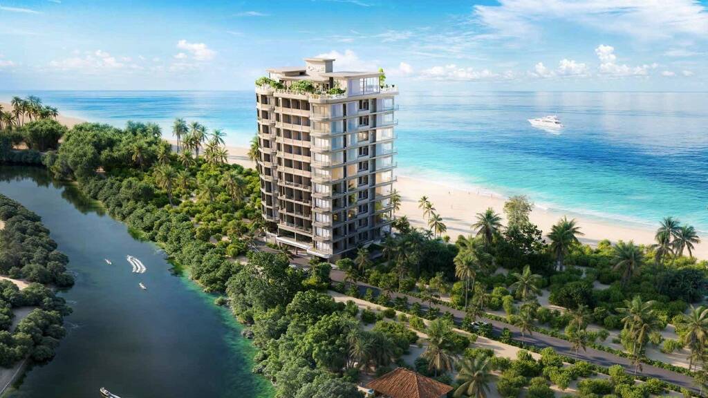 Wir verkaufen 36 Wohnungen auf 9 Etagen mit 2 und 3 Schlafzimmern und 180-Grad-Blick nach Süden über den Indischen Ozean und nach Norden über die Rekhawa-Lagune.