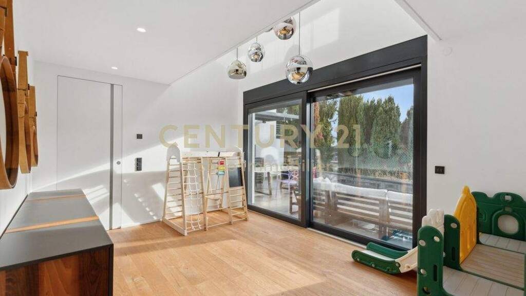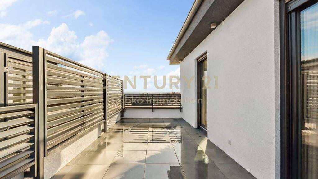 Im Obergeschoss stehen drei nahezu gleich große Zimmer sowie ein exklusives Masterbad zur Verfügung. Dieses bietet großformatige Fliesen, eine begehbare Regendusche und eine freistehende Badewanne und schafft eine luxuriöse Wellness-Atmosphäre. Hochwertiger Parkettboden, Fußbodenheizung und Klimaanlage unterstreichen den hohen Ausstattungsstandard. Ein weiteres Highlight ist die Terrasse im Obergeschoss mit Blick auf stimmungsvolle Sonnenuntergänge.