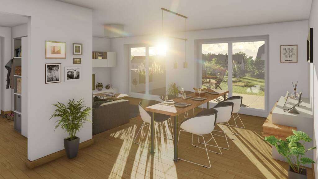 In Ortsrandlage, mit Blick über die Felder und trotzdem nah zur Innenstadt, ist diese Wohnform ideal für Familien und solche, die es werden wollen.