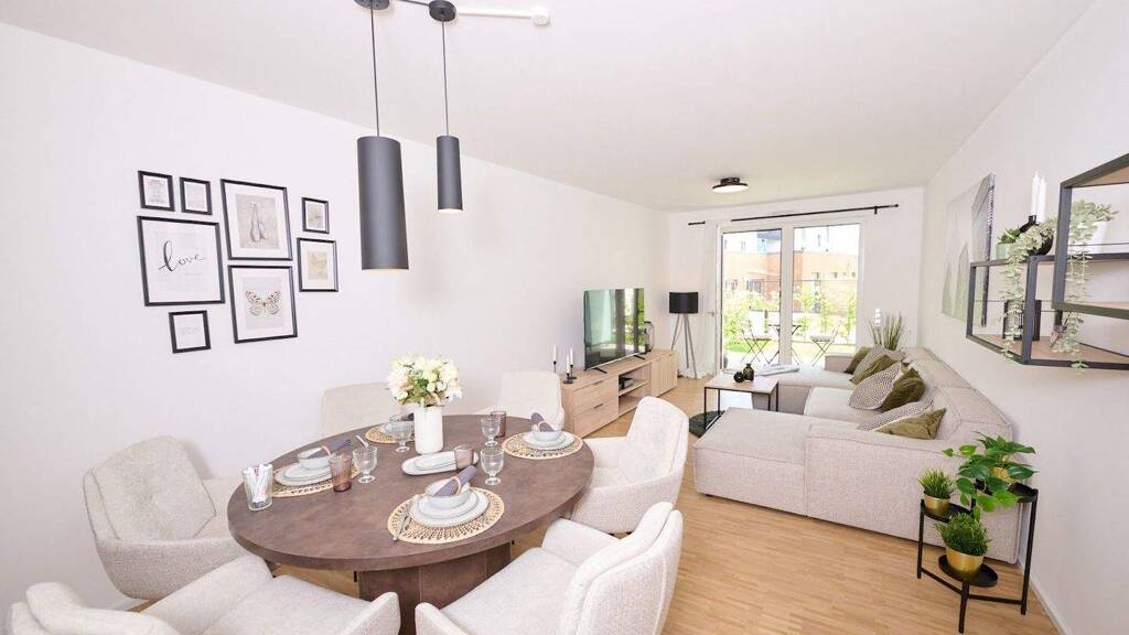 Der lang gezogenen Bogen unserer Wohnungsbauten passen sich perfekt in die Umgebung ein. Ihre lichtdurchfluteten und optimal geschnittenen Wohnungen bieten ein hochwertiges neues Zuhause für alle Generationen. Sie sind selbstverständlich barrierearm gestaltet und verfügen sowohl über Aufzüge als auch über Parkgaragen.