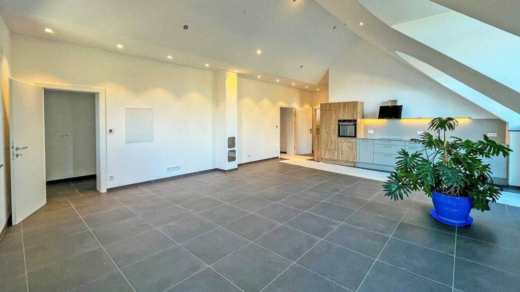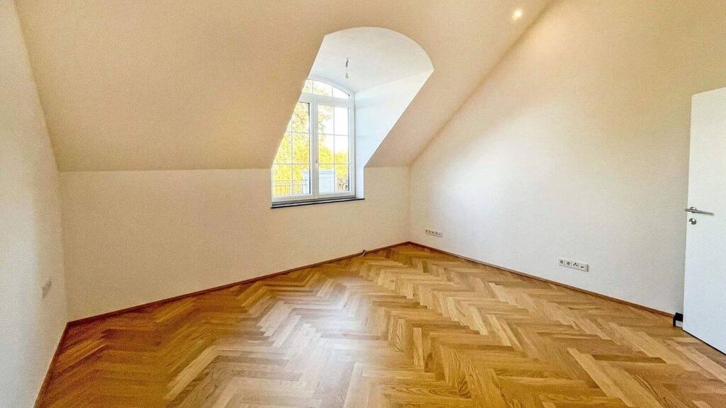 Auf ca. 85 m² Wohnfläche stehen vom Vorraum kommend ein separates WC, ein Bad mit Walk-In-Dusche, ein ostseitiges Zimmer und das über 52 m² große Wohn-Esszimmer mit offener Küche zur Verfügung. Die Wohnküche sowie Bad und WC sind mit Feinsteinzeug verfliest, im Schlafzimmer ist Stabparkett verlegt. In der Tischlerküche mit hochwertiger Steinplatte sind Beko-Markengeräte (Induktionsherd, Dunstabzug, Backofen, Kühlschrank, Geschirrspüler) eingebaut.