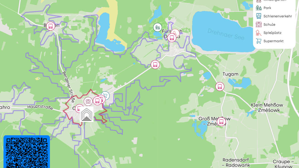 Der Landschaftspark und das Wasserschloss Fürstlich Drehna in etwa 3,7 Kilometern Entfernung laden zu erholsamen Ausflügen und spielerischen Erkundungen mit den Kleinen ein. Auch der öffentliche Personennahverkehr ist mit einer Bushaltestelle in ca. 300 Metern gut erschlossen, sodass Tagesausflüge oder Pendelwege bequem zu gestalten sind.