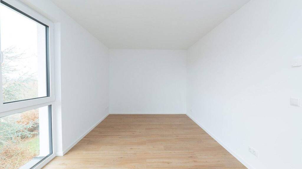 Bodentiefe, dreifach verglaste Fenster sorgen für viel Tageslicht, ein großzügiges Raumgefühl und hervorragende Energieeffizienz.