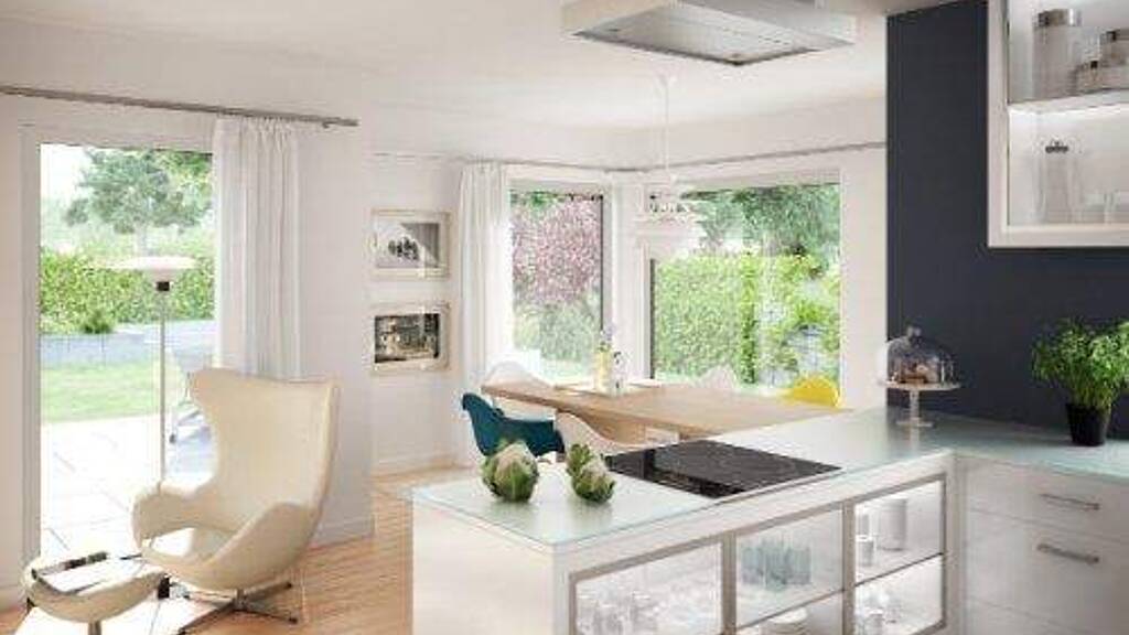 mit 25° oder 38° Dachneigung bzw. auch als Walm- oder Flachdach begeistert mit großen Fensterflächen und vielen