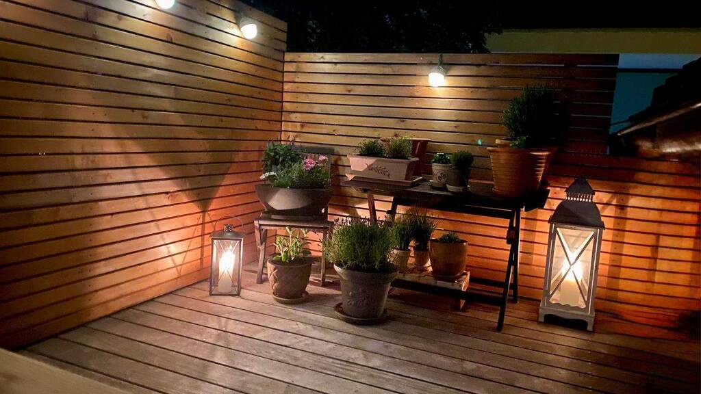 Die Terrasse (ca. 18 m², 2021 von Holzbau Schlager erneuert) begeistert mit IPE-Holzboden, Holzsichtschutz und Sonne bis in die Abendstunden – ein echtes Outdoor-Wohnzimmer mit Wohlfühlgarantie.
