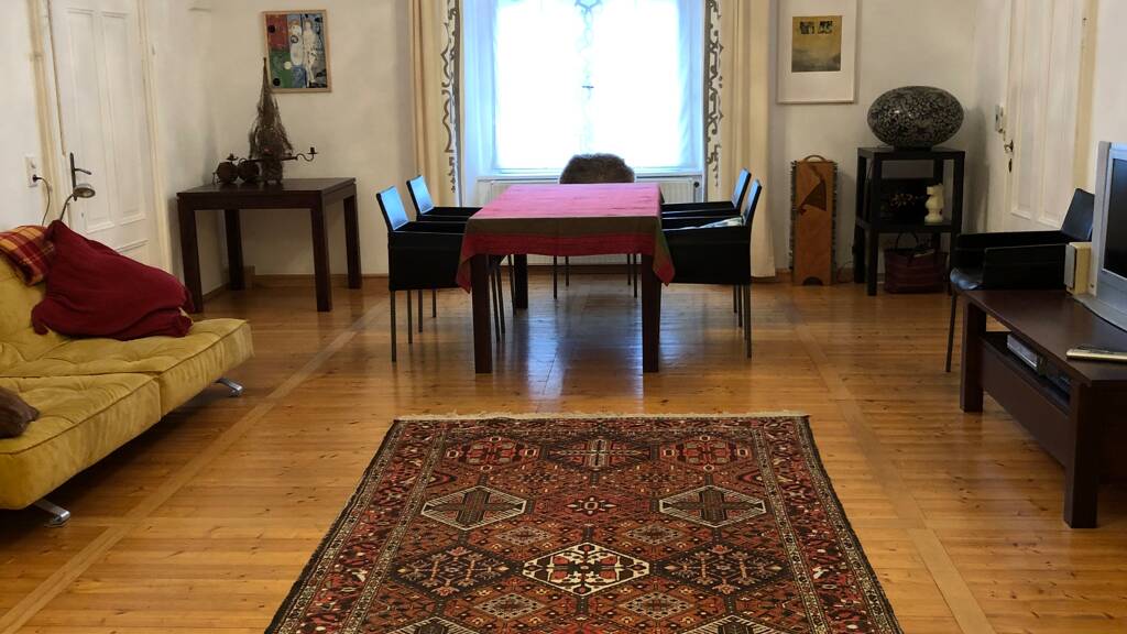 Besondere Ausstattungen: - Küche mit Kamin: Für gesellige Abende und wohlige Wärme. - Schlafzimmer mit Kachelofen: Traditionelle Gemütlichkeit für entspannte Stunden. - Balkonanteil: Ein halber Balkon (ca. 9,71 m²) direkt von der Küche aus zugänglich, wird gemeinschaftlich genutzt und lädt zum Verweilen ein.