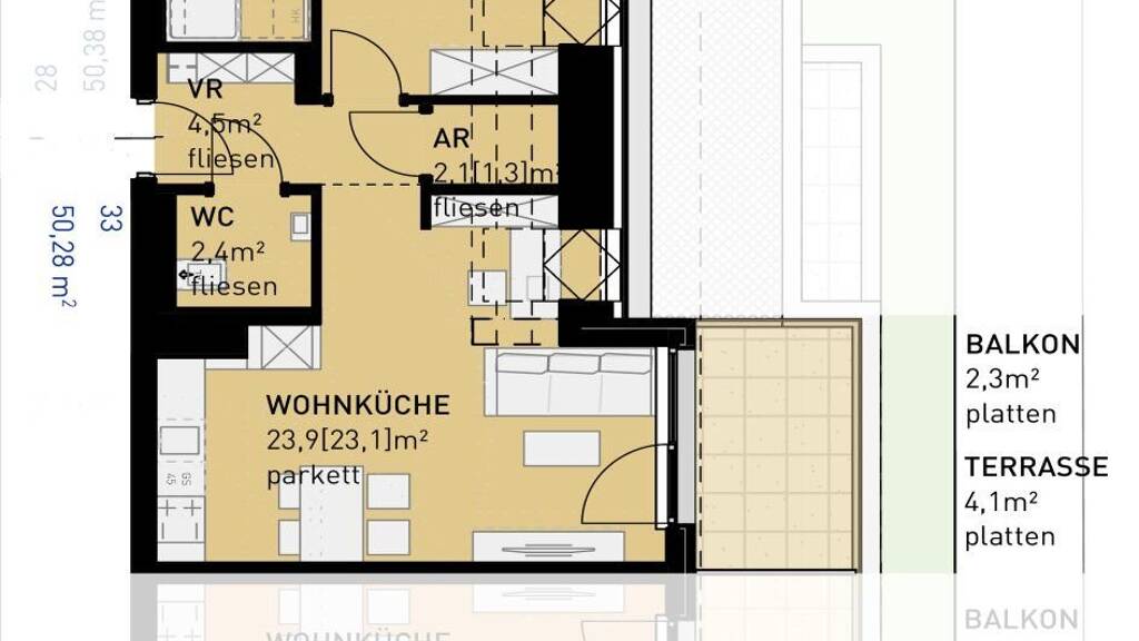 Stichworte Nutzfläche: 50,20 m², Gesamtfläche: 52,38 m², Anzahl Balkone: 1, Anzahl Terrassen: 1, Balkon-Terrassen-Fläche: 6,40 m², Kellerfläche: 1,70 m², Bundesland: Wien, 4 Etagen, Wohnungsnr.: 33