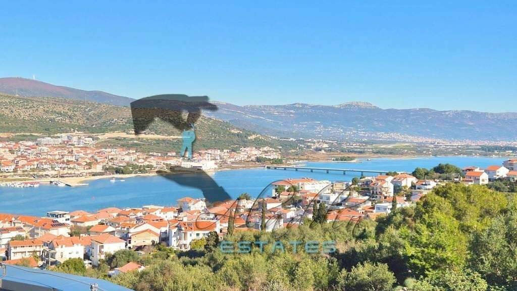 Sie befindet sich in leicht erhöhter Lage mit ausgezeichnetem Meerblick. Alle Nebeneinrichtungen, einschließlich Meer, Strand, Stadt Trogir und Flughafen, sind in unmittelbarer Nähe. Es fällt keine Immobilienverkehrssteuer an.