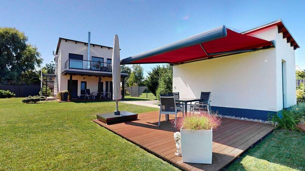 Das weitläufige Grundstück bietet zahlreiche Freizeitmöglichkeiten. Ein Boccia- und Badminton-Platz lädt zu sportlichen Aktivitäten ein, während vier Außenstellplätze für PKWs ausreichend Parkmöglichkeiten garantieren. Zusätzlich sorgt eine Photovoltaikanlage mit 20 kWp Leistung und Speicher für eine nachhaltige Energieversorgung. Eine BWT-Wasseraufbereitungsanlage sichert die Qualität des Wassers im gesamten Haus.