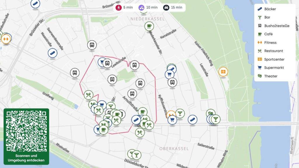 Auch die hervorragende Infrastruktur lässt in Oberkassel keine Wünsche offen. Vom großzügigen Einzelhandels-Angebot für den täglichen Bedarf, dem Wochenmarkt am Barbarossaplatz bis zu Boutiquen aller Art, von Kindergärten bis Gymnasien, von praktischen Ärzten bis Spezialisten ist alles vorhanden. Auch die kulinarische Vielfalt hat einen Stern verdient. Ob urige Eckkneipe, Bistro oder Szenetreff, in Oberkassel kommt jeder auf seinen Geschmack. Die Luegallee, Hauptschlagader von Oberkassel, repräsentiert dieses vielfältige Angebot am besten. Optimale Anbindung an das Autobahnnetz sowie an den ÖPNV sorgt für beste Mobilität in alle Richtungen.