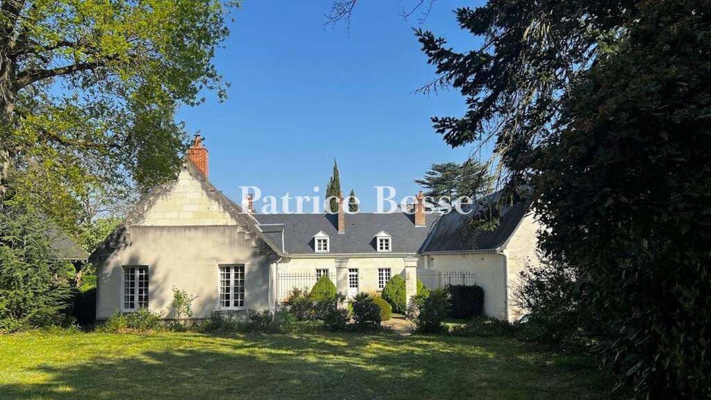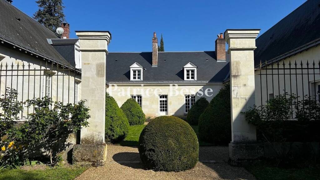 Nestled within a residential neighbourhood in a town along the banks of the Cher, the dwelling is situated on carefully maintained landscaped grounds of nearly 4,500 m², planted with plenty of trees and flowers, which includes a large covered patio, swimming pool, greenhouse and two outbuildings. From the street, the property is accessible via a wrought-iron gate supported by two stone pillars, which opens onto a gravel drive that runs alongside part of the grounds and one of the dwelling's wings, in the direction of the two outbuildings used for vehicle parking. As for the U-shaped, two-storey dwelling, composed of an 18th-century central building framed by two wings, it surrounds, in the back, a grassy courtyard, scattered with pruned box trees, and accessible via an opening flanked by two tuffeau stone pillars on either side, which are then extended by low stone walls. With tall rectangular, small-paned windows, the house's tuffeau stone exteriors are topped by a slate gable roof, which is, in turn, crowned by gable dormer windows, whereas its eastern wing includes a large picture window, in the same style, as well as several additional rectangular windows. Last, but not least, the dwelling's interior has been well conserved with hardwood floors, fireplaces, wood panelling and tuffeau stone walls, while the eastern wing's gable end has been converted into a garage, the plaster-coated rubble stone exterior of which is accessible via wooden double doors.