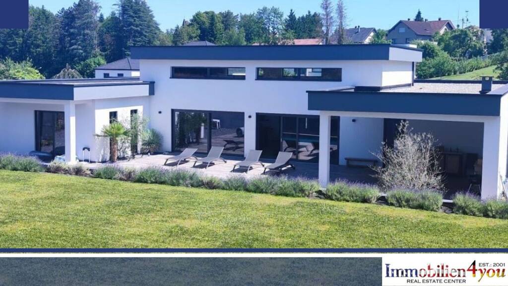 Zum Verkauf steht eine wunderschöne moderne Villa. Das im Jahr 2021 erbaute Objekt vereint Modernität und eine hochwertige Ausstattung. Die 238 m² Wohnfläche vereinen Modernität mit hochwertigen Materialien und bietet somit eine hohe Lebensqualität, alles wurde bis ins kleinste Detail durchdacht. Das lichtdurchflutete Konzept setzt sich in den Schlafräumen fort. Das Elternschlafzimmer mit eigenem Bad verfügt über ein Ankleidezimmer, 3 weitere Schlafzimmer, Badezimmer und Gäste WC lassen die clevere Aufteilung in einen Tages- und Nachtbereich für sich sprechen.