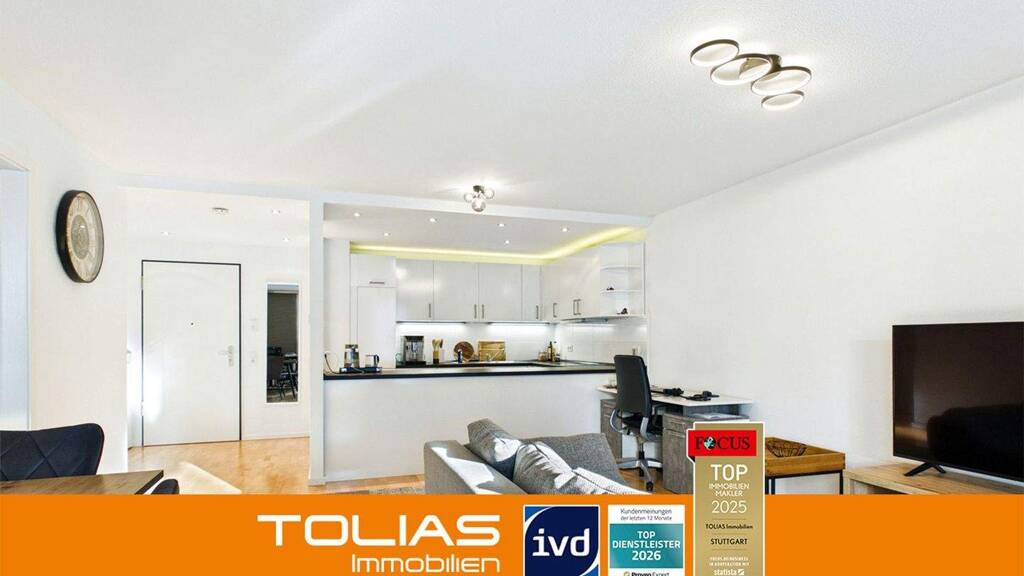 Highlights: + Hochwertige Ausstattung mit stilvollem Wohnkonzept + Überdachter Westbalkon für ruhige Feierabendmomente + Moderne Einbauküche mit markanter Theke + Aufzug für bequemes Ankommen + Tiefgaragenstellplatz + Zentrumsnahe Lage in Leonberg mit kurzen Wegen und hoher Alltagsqualität