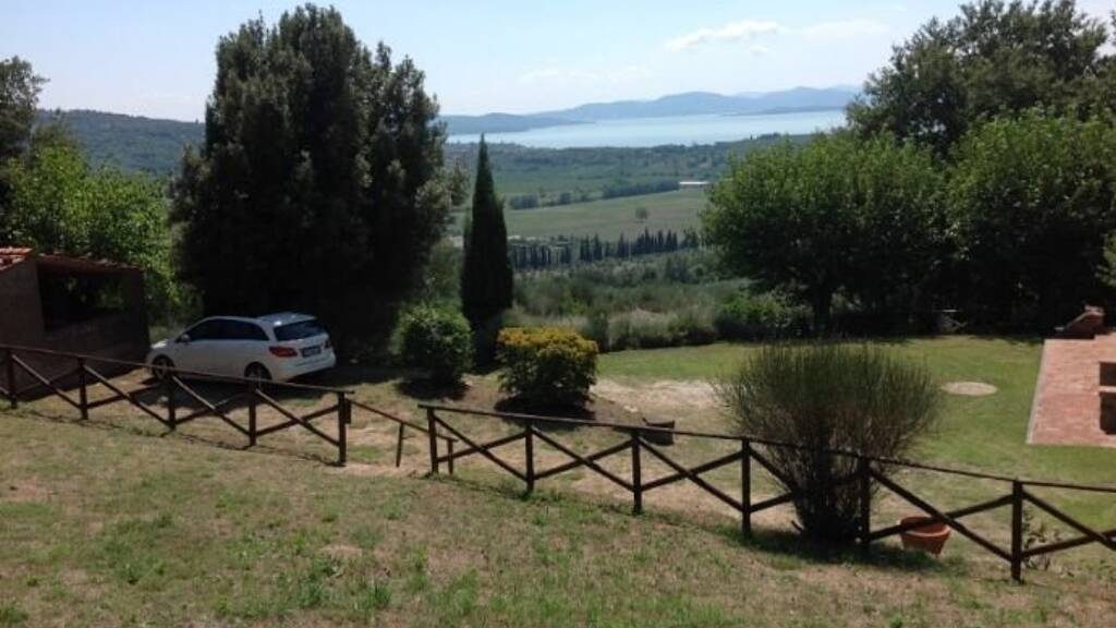 Objektbeschreibung Etwa 3 km von Passignano, in dominanter Lage, ist dieses alte dreistöckige Herrenhaus von 470 m2 aus dem Jahr 1816, das einst einer Adelsfamilie gehörte. Es wurde in den 90er Jahren (bis 1995) renoviert. Es bewahrt teilweise die alten Materialien, wie die schönen ursprünglichen Holzbalken des 19. Jahrhundert und den Terrakottaboden am Erdgeschoss. Das Haus befindet sich in der Mitte eines Gartens von ca. 8000 m2 und ist von einer Hecke von der Straße geschützt. Das hügelige Land rund um die Immobilie ist etwa 5 Hektar, teilweise Wald und Olivenhain (mit 27 Olivenbäume, die einen durchschnittlichen Ertrag von 110 kg Öl pro Jahr geben). Die Immobilie eignet sich als Privathaus oder als Business-Unterkunft (B&B). Darüber hinaus wurde das Dach komplett renoviert, die Böden verstärkt, und der Zugang zum Haus ist über eine unbefestigte Straße. Ausstattungen: LPG Heizung, Brunnen (75 m tief, reich an Wasser), Satellitenantenne, automatisches Bewässerungssystem, automatisches Tor, Klimaanlagen in Zimmern des ersten Stockes (warme und kalte Luft). Raumaufteilung Im Erdgeschoss besteht das Haus aus 2 durch Bögen verbundenen Zimmer (Esszimmer und Billardzimmer mit Kamin), Küche, 1 Bad, 2 Doppelzimmern mit mitbenutzem Bad mit Doppeleingang (von beiden Schlafzimmern); es gibt auch eine große Terrasse von 68 qm. Der Haupteingang führt in dem ersten Stock über eine interne Treppe: an dieser Etage finden wir eine geräumige Küche mit Kamin, 3 große Schlafzimmer, 2 Badezimmer. Wo der Keller war, sind jetzt eine Garage, ein Hauswirtschaftsraum und 1 Bad. Neben dem Haupthaus gibt es zwei Anbauen, für die es bereits ein Wiederherstellungsprojekt genehmigt ist, um ein einzelnes Gebäude für Wohnzwecke von etwa 110 m2 zu bauen (das lief im Januar 2017 ab).