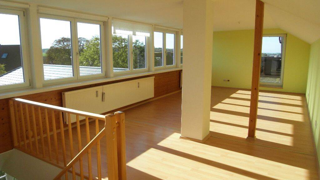 Das dreigeschossige Mehrfamilienhaus beherbergt 3 Mietparteien. Die freiwerdende Wohnung erstreckt sich über zwei Etagen (Ober- und Dachgeschoss). Folgende Ausstattung erwartet Sie: - großzügige Dachterrasse mit beeindruckendem Weit- und Rundumblick - Einbauküche mit Ceran-Kochfeld, Backofen, Kühl-Gefrier-Kombination, Spüle und Geschirrspüler - sichtbare Dachbalken und Schrägen sorgen für Gemütlichkeit - breite Fensterfront schafft viel Licht - Laminat in den Wohnräumen - Tageslichtbad mit Badewanne, Glasduschabtrennung und Waschmaschinenanschluss - geräumige Abstellkammer im Treppenhaus - ein Wohnungszugang befindet sich sowohl in der unteren als auch in der oberen Wohnebene - im unteren Wohnbereich befindet sich ein großzügiger Eingangsbereich/Entrée