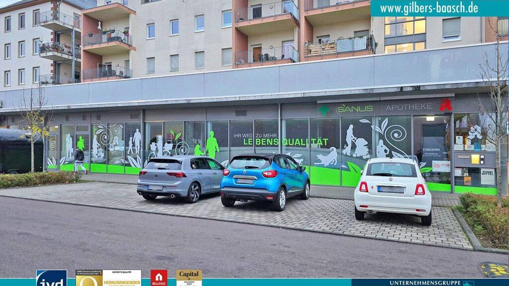 Die Einheit überzeugt mit einer großzügigen Schaufensterfront von rund 20 Metern, die eine ausgezeichnete Sichtbarkeit sowie vielseitige Präsentationsmöglichkeiten bietet. Ein einladender Kundeneingang sowie zwei weitere Eingänge ermöglichen flexible Abläufe und eine klare Trennung zwischen Kundenbereich und internen Arbeitswegen. Die Ausstattung ist modern und funktional. Ein barrierefreies WC, zwei weitere Toiletten sowie ein Bad mit Dusche schaffen hohen Komfort für Mitarbeitende und Kunden. Aktuell wird die Fläche als Apotheke betrieben.