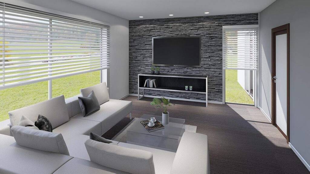 Boden & Wände: - Vinyl-Fußboden (Smart Base click) - pflegeleicht, langlebig und stilvoll - Sockelleisten aus PVC mit integriertem Kabelkanal sowie praktische Übergangsleisten - Silikonputz für moderne, saubere Wandoberflächen - Fassaden-Polystyrol (160?mm) für optimale Wärmedämmung