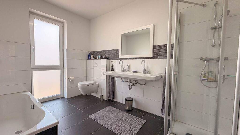 - Badezimmer: Badewanne, Bad mit Dusche, Bad mit Fenster