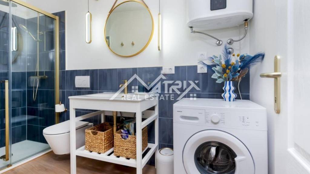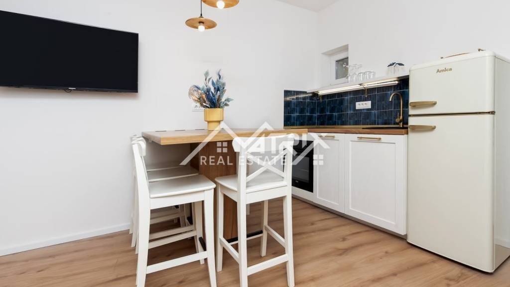 Die Wohnung wurde im Jahr 2025 vollständig renoviert - neue Strom- und Wasserinstallationen, neuer Boden, geglättete und frisch gestrichene Wände. Bei der Gestaltung wurde auf jedes Detail geachtet, wodurch ein Raum mit Charme, Wärme und Stil entstanden ist.