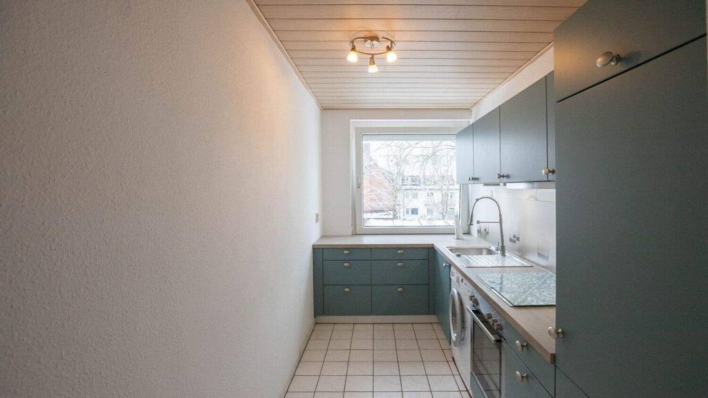 Die separate Küche ist funktional geschnitten und bietet ausreichend Platz zum Kochen und Verstauen durch viele Auszüge und Schränke. Das innenliegende Badezimmer ist mit einer Badewanne ausgestattet und lädt zum Entspannen ein.