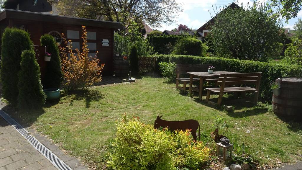 Terrassen, Balkon und Garten mit direktem Zugang zum Bach (im Sommer nutzbar zum Baden)