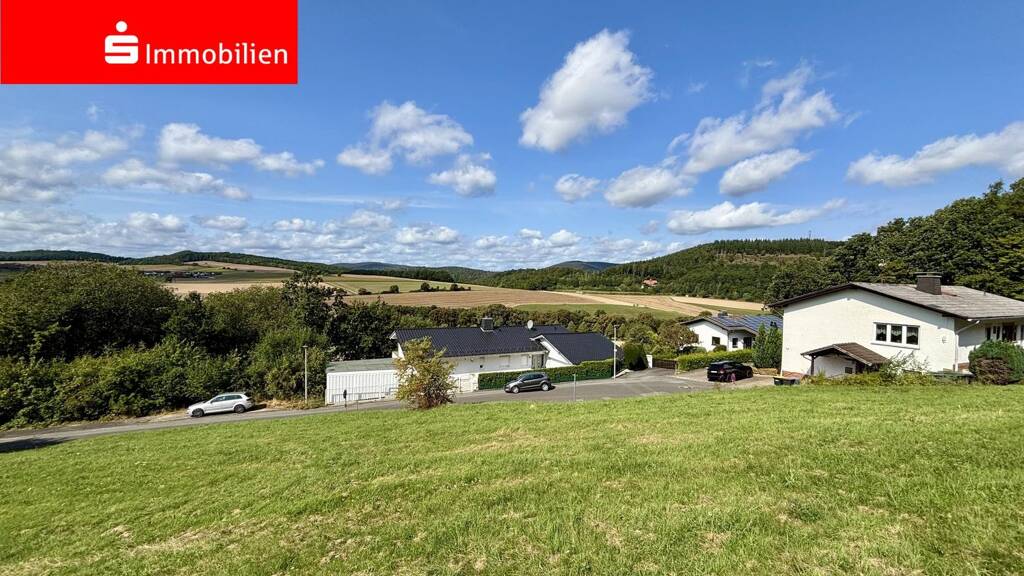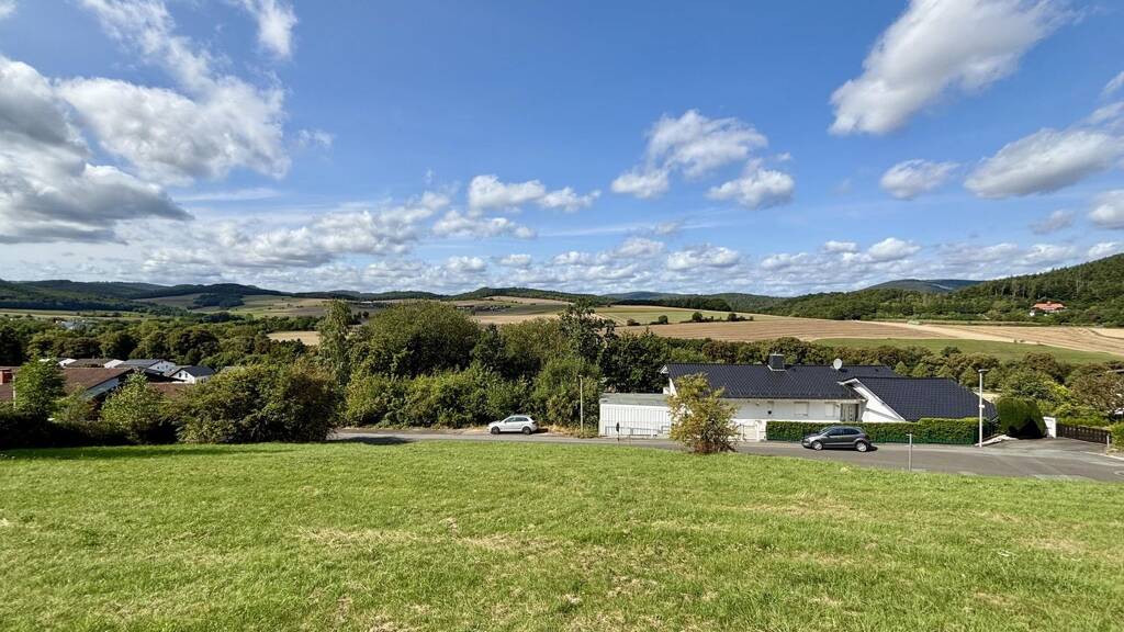 Der erhöhte Standort ermöglicht einen herrlichen Panoramablick in Richtung Reinhardshausen-Albertshausen - ideal für alle, die Wohnen und Natur harmonisch miteinander verbinden möchten.