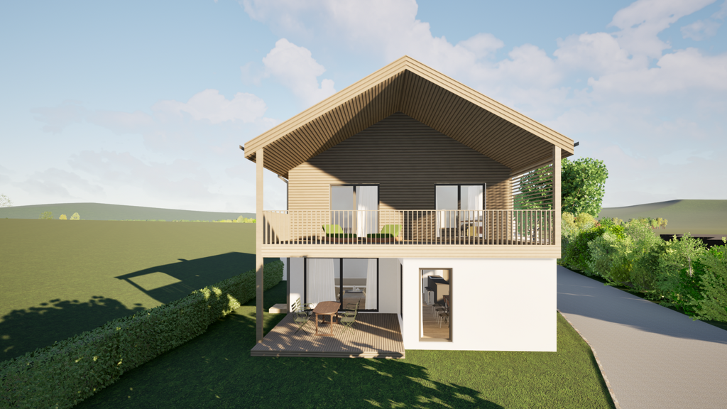 EINFAMILIENHAUS Das Einfamilienhaus erstreckt sich über zwei Wohngeschosse und überzeugt durch großzügige, lichtdurchflutete Wohnbereiche. Terrassen auf beiden Ebenen und ein privater Garten erweitern den Wohnraum ins Freie und schaffen ideale Bedingungen für entspanntes Wohnen in naturnaher Umgebung. Eine Doppelgarage sowie praktische Nebenflächen ergänzen das stimmige Gesamtbild eines modernen Familienhauses.