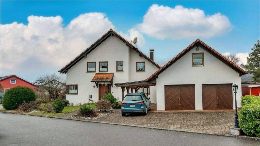 Das Haus ist in einem sehr gepflegten Zustand und hat eine besondere Ausstrahlung, die sich in den lichtdurchfluteten Räumen und der guten Aufteilung widerspiegelt. Mit nur wenigen Modernisierungen können Sie das Haus ganz nach Ihrem Geschmack gestalten und nach Ihren eigenen Vorstellungen zu einem wahren Traumhaus ausbauen. Das Obergeschoss wird derzeit vermietet, sodass Sie die Möglichkeit haben, die Immobilie sowohl als Renditeobjekt als auch als zukünftiges Eigenheim zu nutzen. Das schafft Ihnen nicht nur Flexibilität, sondern auch Potenzial für eine langfristige Wertsteigerung sofern gewünscht. Das Haus gliedert sich in eine großzügige Wohnung im Erdgeschoss und eine separate, vermietete Einheit im Obergeschoss. Im Erdgeschoss erwarten Sie helle und gut geschnittene Wohnräume, die Platz für eine Familie oder Paare bieten. Die offene Raumgestaltung im Wohnzimmer schafft eine angenehme Atmosphäre für gesellige Abende, während die angrenzende Küche genügend Platz für kulinarische Aktivitäten lässt. Zwei Schlafzimmer im Erdgeschoss bieten Ruhe und Rückzugsmöglichkeiten, während das Badezimmer ausreichend Platz für Ihre individuellen Gestaltungsideen bietet. Der Außenbereich des Hauses punktet mit einem schönen Grundstück von ca. 920 m², das zahlreiche Möglichkeiten zur Nutzung und Gestaltung bietet. Der Garten ist der ideale Ort für Erholung, sei es für gesellige Grillabende, als Spielplatz für Kinder oder einfach als Rückzugsort. Neben dem Wohnhaus finden Sie auch eine Doppelgarage, die Ihnen viel Platz für Ihre Fahrzeuge bietet. Zusätzlich gibt es einen Carport sowie drei Stellplätze, die für Gäste oder weitere Fahrzeuge genutzt werden können. So haben Sie immer genügend Platz für Ihre Autos und zusätzlichen Stauraum für Gartengeräte oder Werkzeuge.